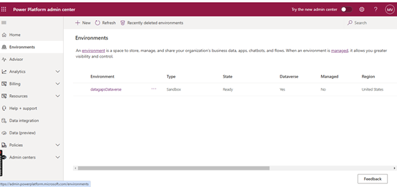 - Go to the Power Platform Admin Center.